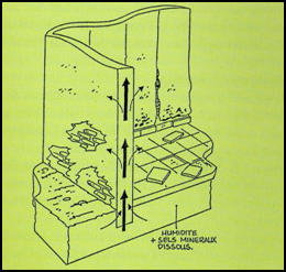 Une maçonnerie en contact avec une source d'eau, fonctionne comme une pompe, un buvard !